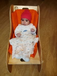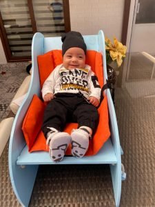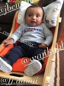 Lucianito luce contento y cómodo en su Wanku, regalo de su tata Patricio Mella